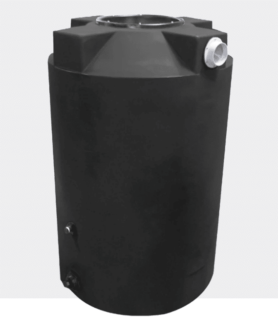 200-gallon rain harvesting poly water tank; 36″ diameter x 56″ height, available in black, green, and mocha.