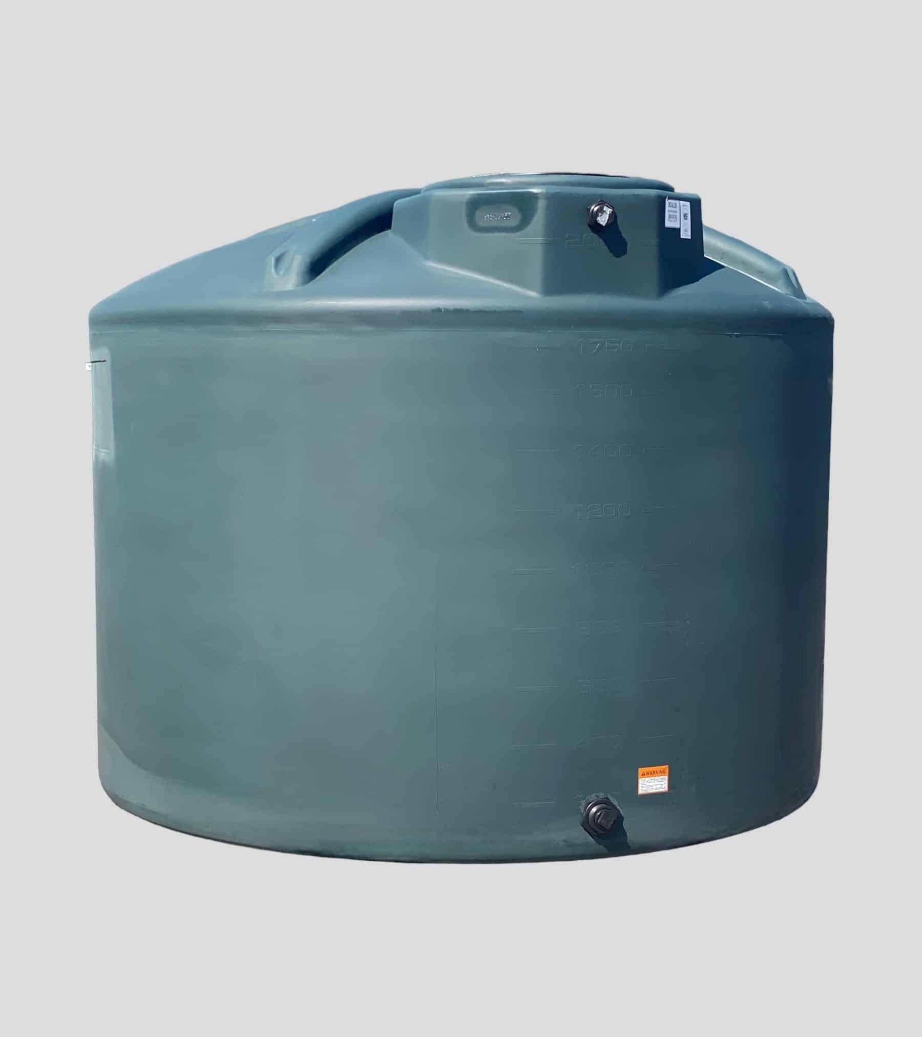 A 2,000-gallon Vertical Poly Water Tank is 96 ” in Diameter by 73 ” in Height and is available in Black and Dark Green.