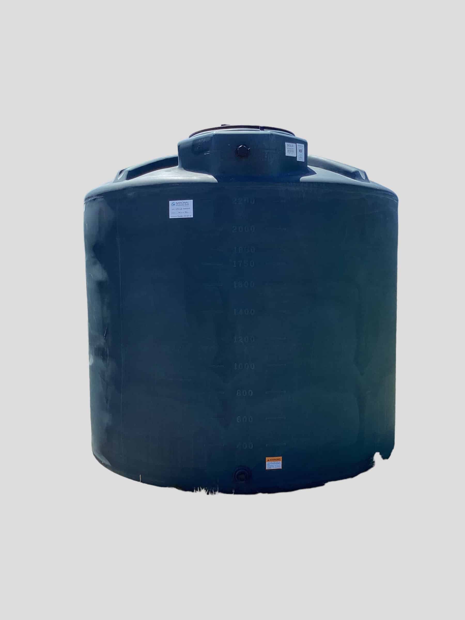 2500-gallon vertical poly water storage tank measuring 96″D x 90″H. Tanks come in Black, Dark Green, and Sand (Tan) in sizes up to 3000 gallons, while only Black and Dark Green are available for sizes above 3000 gallons.